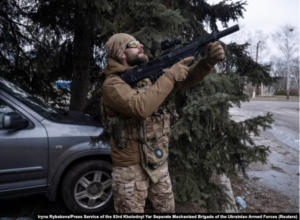 Iryna Rybakova, zyrtare për media në Brigadën e 93-të të Mekanizuar të Ukrainës, publikoi një video më 2 mars të ushtarëve ukrainas që përpiqeshin të rrëzonin një dron ndërsa ai fluturonte drejtpërdrejt mbi Monumentin e të Dashuruarve, përpara se të shkatërronte një makinë të parkuar aty pranë.